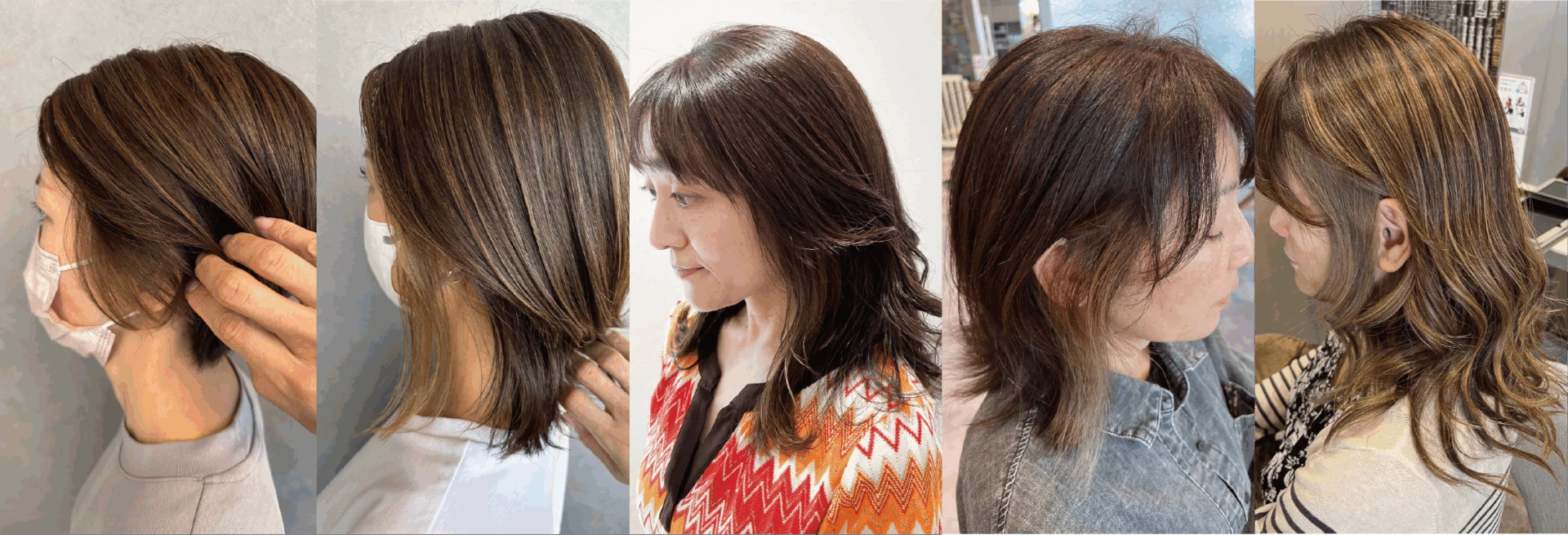 この【顔周りハイライト】×【表面のハイライト】×【インナーカラー】の組み合わせでお客様のご要望に合わせたスタイルを叶えます。