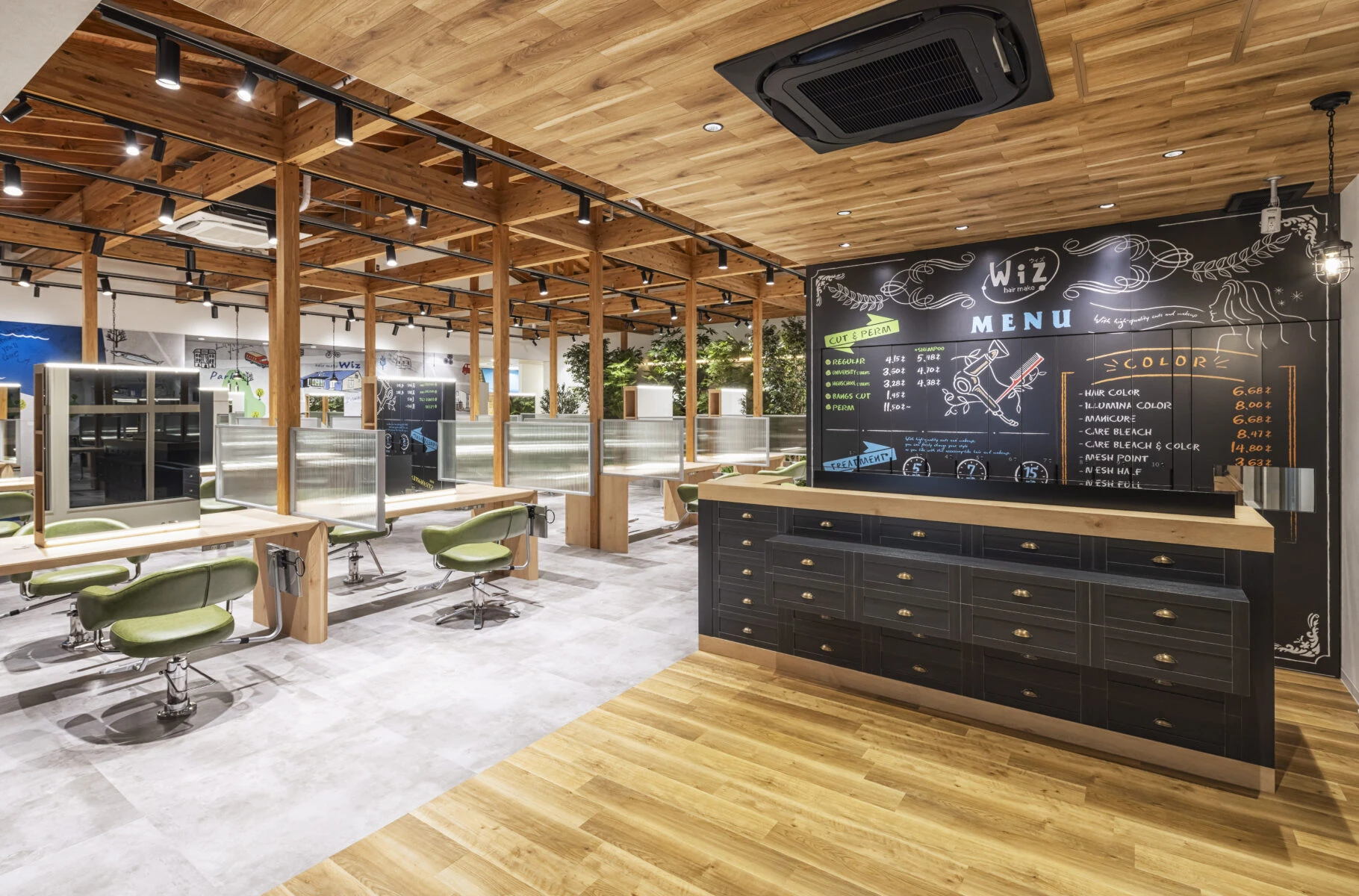 ウッド調で柔らかな光の差し込むエントランス、ダイナミックな壁画が描かれた店内に全席半個室の贅沢空間・・・「髪をキレイに、心も満たして欲しい」―この思いから木更津市にこだわりの上質空間を作り上げました。スタイリストはWizトップクラスの実力派が勢ぞろい。丁寧なカウンセリングからあなただけのヘアスタイルをご提案します。Wiz木更津店で心も満たされるサロンtimeをお過ごしください。