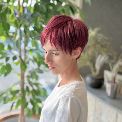 コンパクトショート×濃いめボルドーカラーで洗練ヘアに