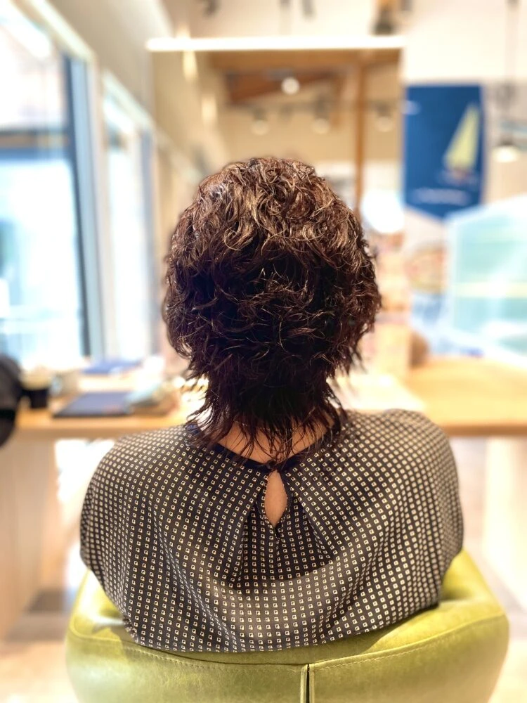 朝のスタイリングをもっと簡単にしたい、 そんなお悩みに合わせてツイストスパイラルを提案しました。 スパイラルの特徴を活かすことで、 髪全体に動きと立体感が加わり、 普段パーマをかけない方でも楽にスタイリングが可能に。 カールと毛流れが際立つ仕上がりで、 ドライ後にワックスを揉み込むだけで完成します。 ラフさの中にきちんと感が出せるので、 オンオフどちらのシーンでも相性抜群。 手軽さとお洒落を両立させたスタイルです。