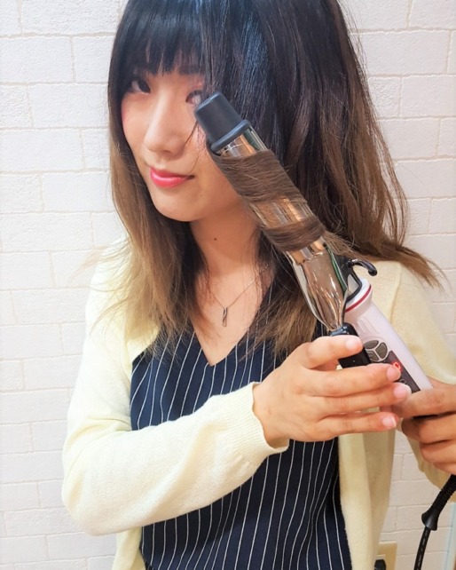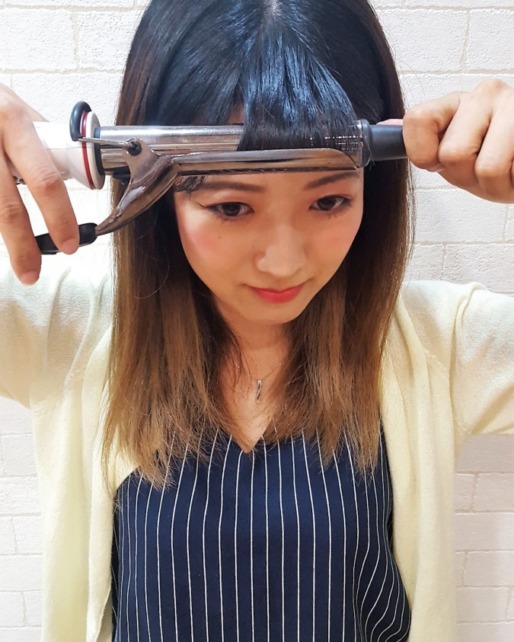 こんな感じに丸みがつくように♪ 根元まで巻き込んでしまうと火傷やボリュームの出過ぎになってしまうので、前髪はナチュラルな内巻きを目指しましょう! -