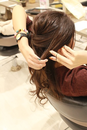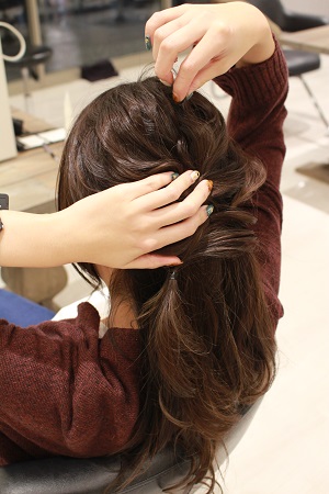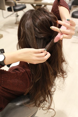 ひろって毛束を出す拾うを交互に繰り返します。 -