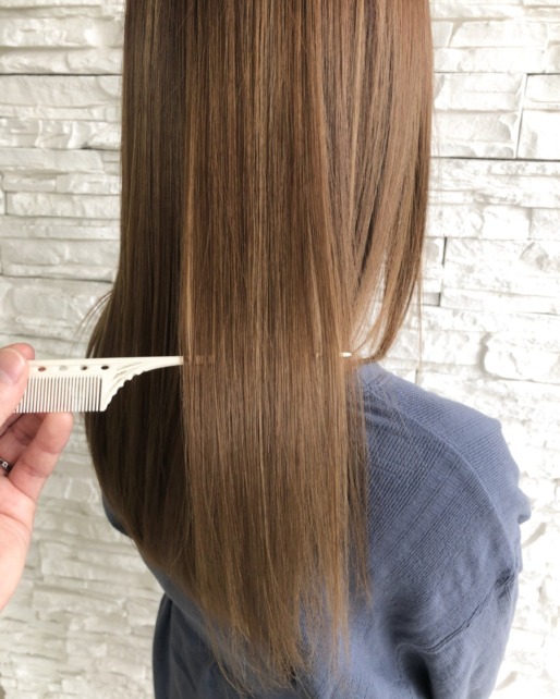 一番大事なカウンセリングでお客様の髪質やご要望に合わせた髪質改善を提案致します。 お客様の髪の状態は、細めの髪質で、度重なるカラーなどの髪のダメージにより広がりやうねりがでてしまっていて、まとまりが悪くなってしまっています。髪質改善エステ解消していきます。 -