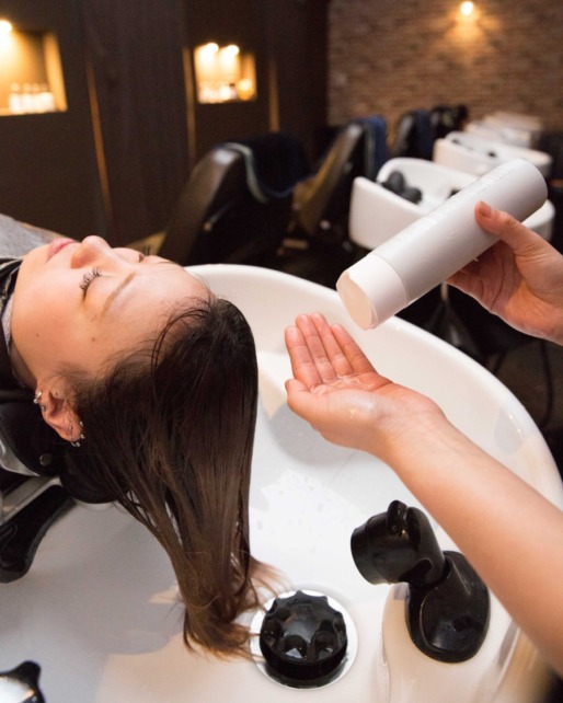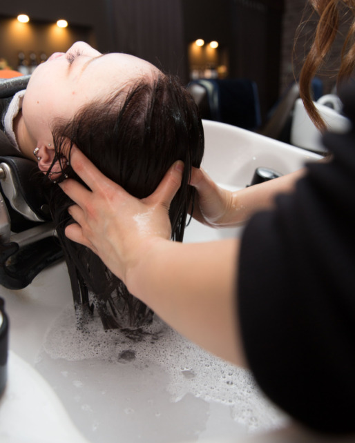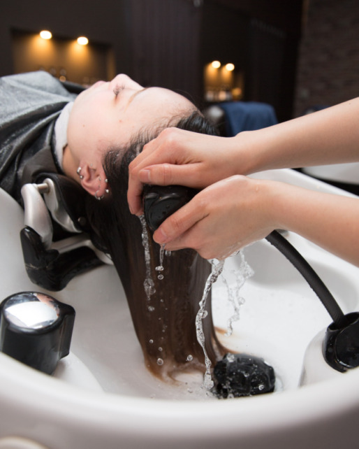 先にWiz式髪質改善エステを行っていくので、専用のシャンプーにて汚れを落とさせていただき、髪質改善に合わせた下準備を行っていきます。 -