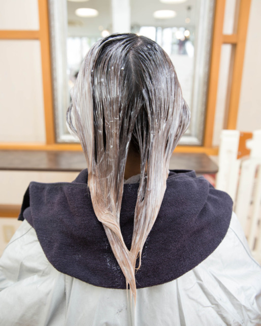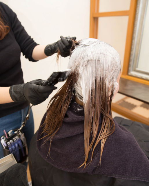 髪の毛全体にカラーのお薬を塗布していきます。 ブリーチや特殊なカラーなども髪質改善と一緒に行えますが、その際は施術の順序が変わる場合もございますので、担当者と相談してくださいませ。 -