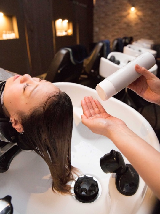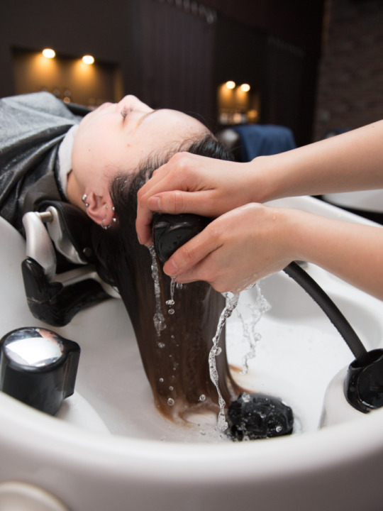 先にWiz式髪質改善エステを行っていくので、専用のシャンプーにて汚れを落とさせていただき、髪質改善に合わせた下準備を行っていきます。 -