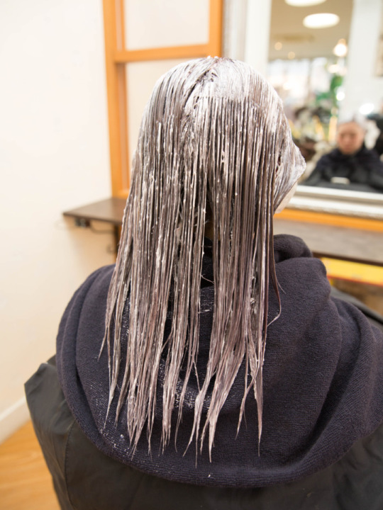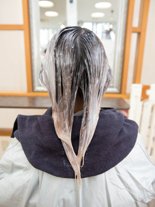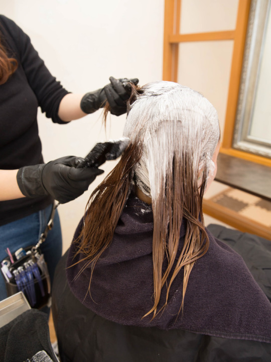 髪の毛全体にカラーのお薬を塗布していきます。 ブリーチや特殊なカラーなども髪質改善と一緒に行えますが、その際は施術の順序が変わる場合もございますので、担当者と相談してくださいませ。 -