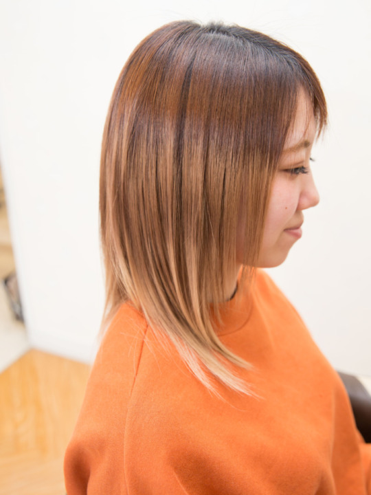 カラーの後、乾かしたあとの仕上がりです。 アイロンを通したりしなくても、髪質改善の効果がしっかりと実感できると思います。 「髪質改善をしてから朝がとても楽になった」、「周りから髪がキレイになったねと褒められた」など、たくさんの嬉しいお言葉をいただけるようになり、こちらとしても本当に嬉しい限りで、是非オススメしたいメニューとなっております☆ -