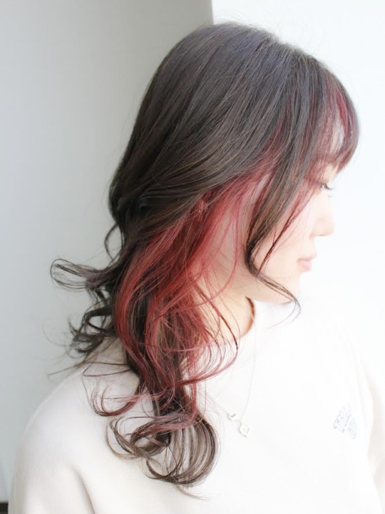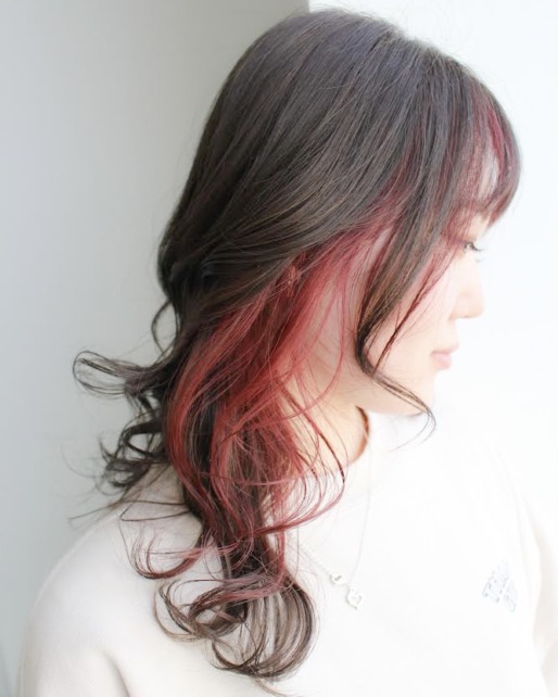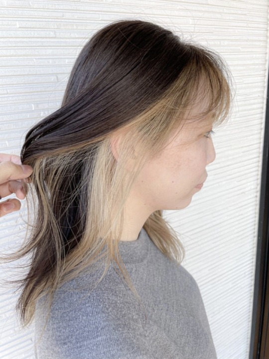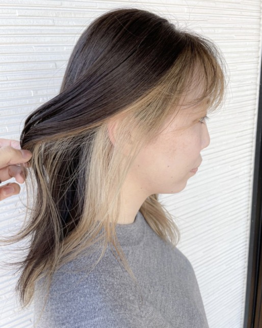 髪の外側と違う色を内側に入れるヘアカラーです。 「ハイトーンにしたいけど、髪全体をブリーチするのは傷みそうで怖い」という方も挑戦しやすいメニューです。 いつものヘアアレンジも、内側の色が見えるようにするだけでぐっと華やかな印象になります。