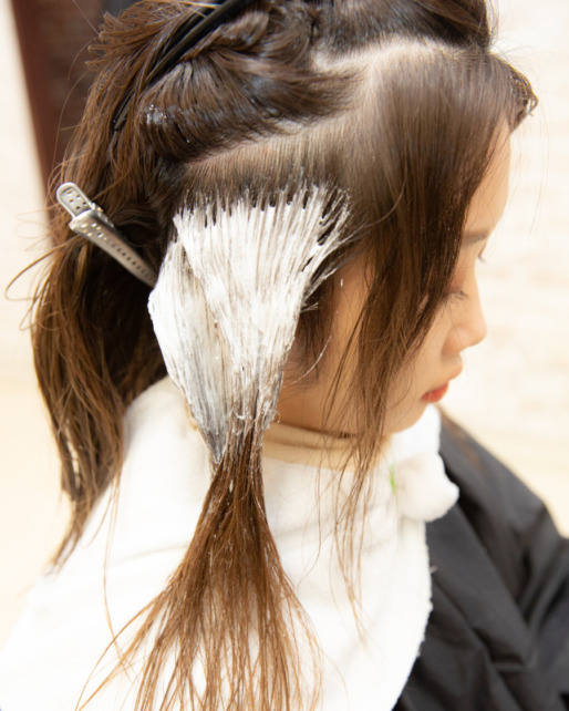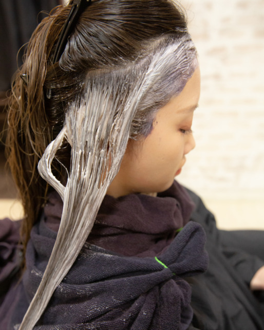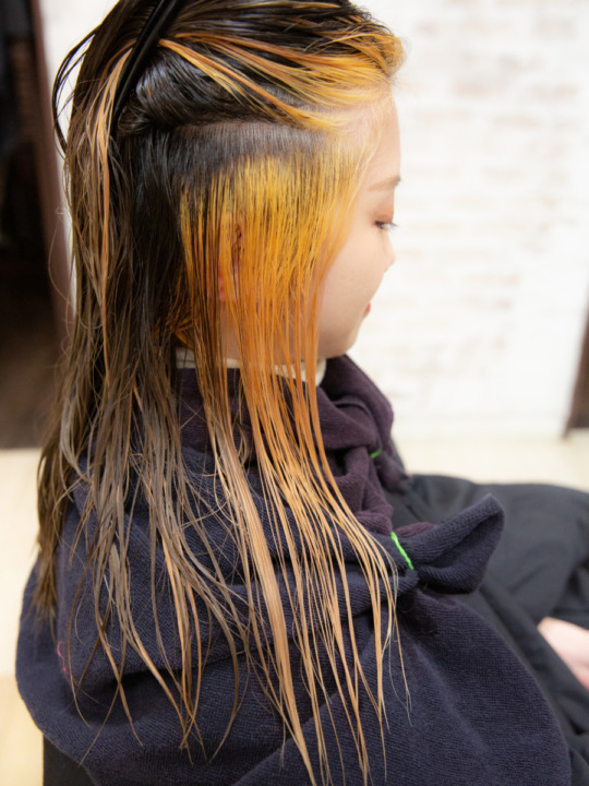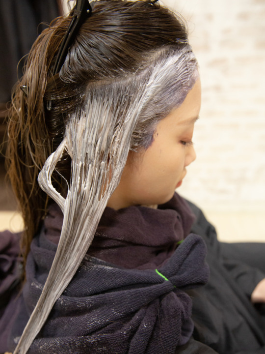 分けとったところにオリジナルで調合したカラーを塗っていきます。 しっかりとブリーチした後であればキレイな色が入るので楽しみにお待ちください☆ -