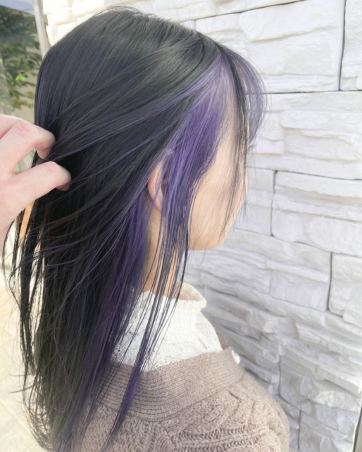 ・パープル クールな中に優しさを感じるパープルカラーで女子力アップ! 色落ちはアッシュベージュになります。 表面のカラーは暗めでも映えるのがパープルのインナーカラー -