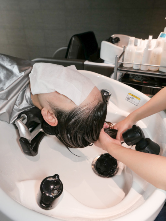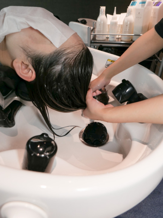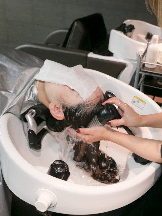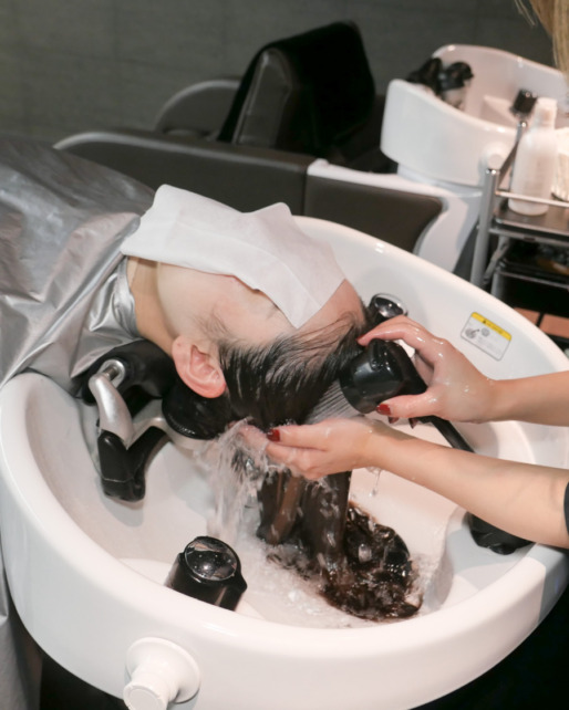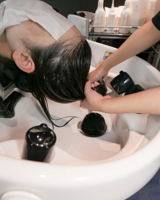 専用のシャンプーで髪の毛をケアしながら優しく洗います。 -