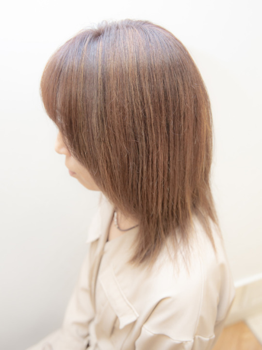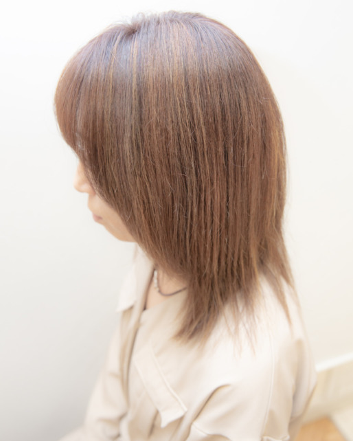 全体的にハイライトが強く強調されるわけでなく、顔周りだけでなく、表面もいつもより明るくなった印象で、髪全体がいつもの仕上がりより明るくなったのを実感くださいませ☆ -
