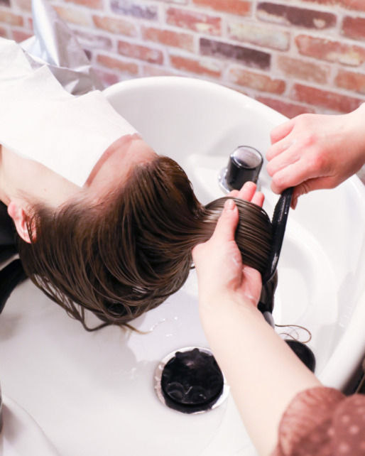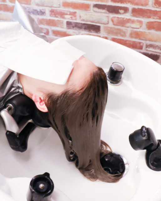トリートメントの効果をよくするために保湿効果の高い☆トリートメント専用のシャンプーで髪の毛をケアしながら優しく洗います。 -