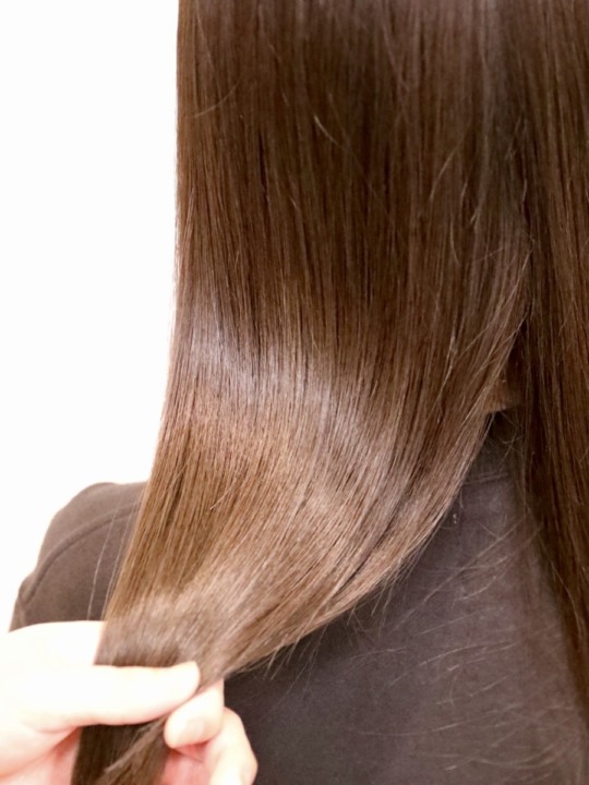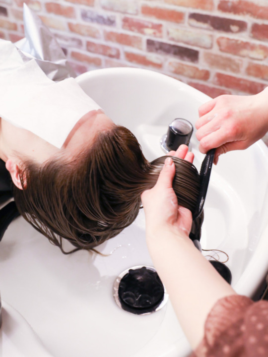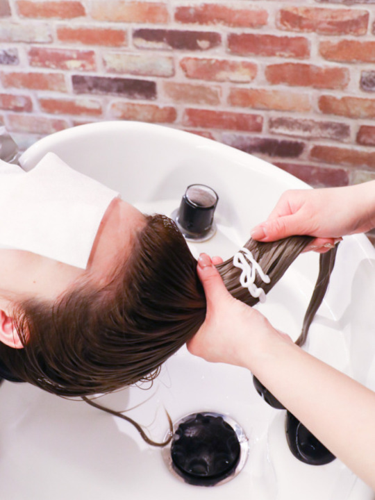 髪にうるおいを与えてキューティクルを整えるトリートメントをしっかりと中間から毛先につけます。 -