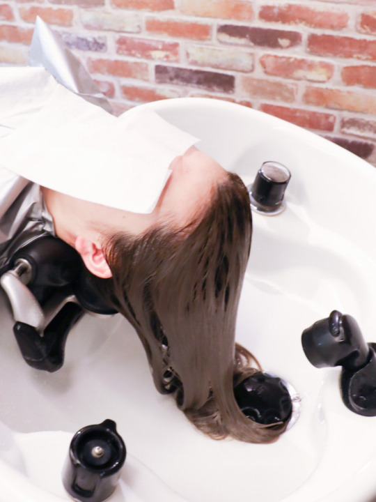 トリートメントの効果をよくするために保湿効果の高い☆トリートメント専用のシャンプーで髪の毛をケアしながら優しく洗います。 -