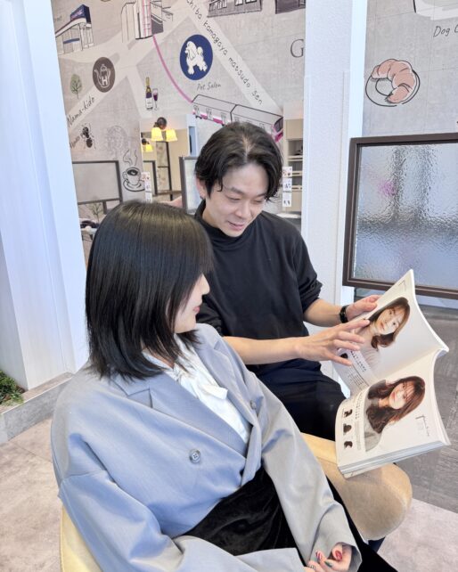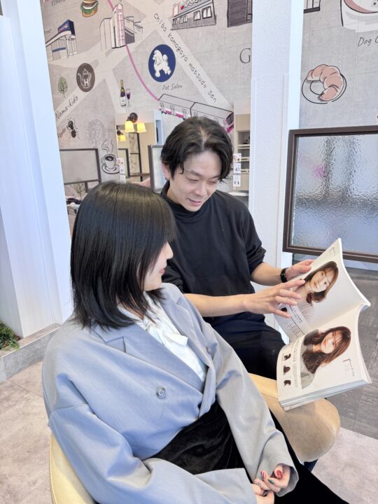 Wizではお客様の理想の髪型に仕上げるために、パーマの強さや種類などをヘアカタログなども使用してしっかり共有いたします。もしお客様ご自身でなりたいヘアスタイルの画像などがございましたらぜひご持参ください。 -
