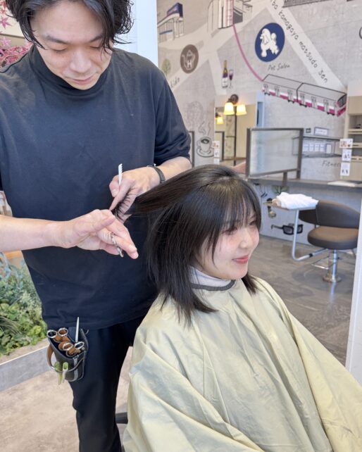 仕上がりのイメージに合わせてカットしていきます。パーマとカットは連動してるのでカットも重要です。 -