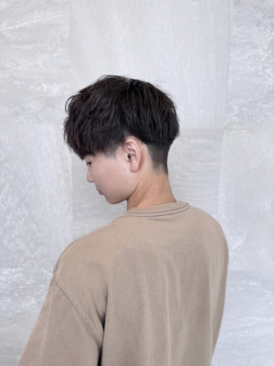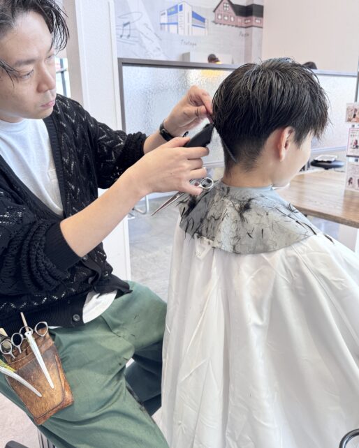 襟足は今回は刈り上げていきます。襟足がスッキリすることによって頭の形が綺麗に見える上、清潔感を演出できます。刈り上げないデザインなどもありますので相談しながら決めさせていただきます。 -
