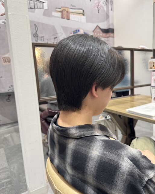 5分置いたら薬剤を水洗してお仕上げとなります。 気になる襟足がおさまり360°どこから見ても綺麗なシルエットとなります。