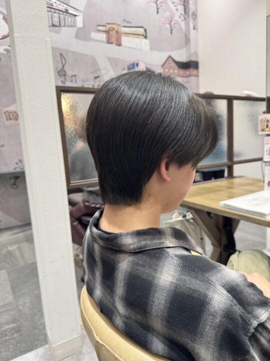 5分置いたら薬剤を水洗してお仕上げとなります。 気になる襟足がおさまり360°どこから見ても綺麗なシルエットとなります。
