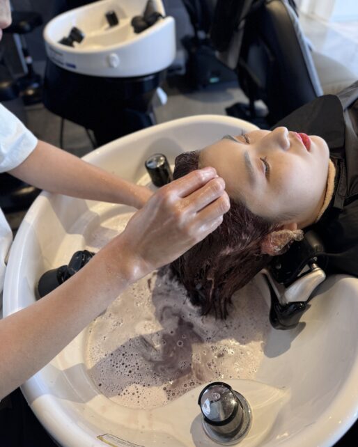 シャンプーが終わったらホットタオルをお首に敷いてトリートメントをつけてヘッドマッサージに移ります。 ☆〜☆☆☆トリートメントやヘッドスパをご希望の方はこのタイミングで行なっていきます。 -