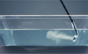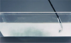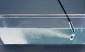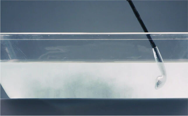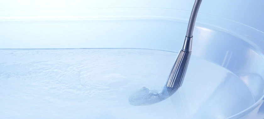 ファインバブルシャワーを浴槽に入れると、なめらかな乳白色に。