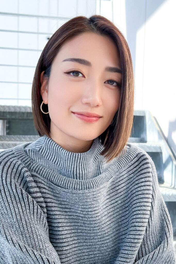 前髪ありのタッセルボブで、顔周りをすっきり見せ、