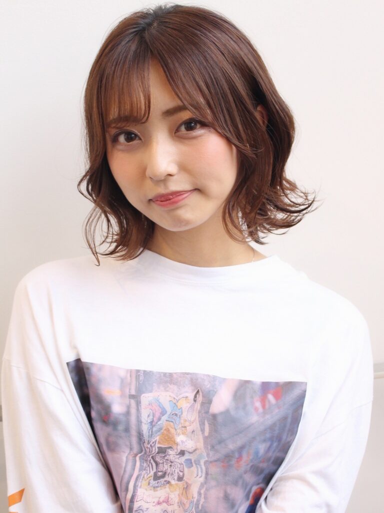 頬の位置にレイヤーを入れてサイドにボリュームが出るように調整したり、厚め前髪でバランスを整えるのがポイントです。