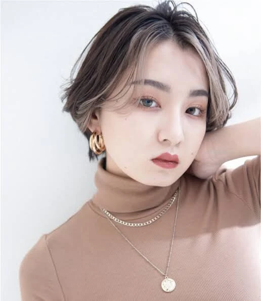 前髪なしのハンサムショートに、ホワイトベージュのフェイスフレーミングで明るさをプラス。顔まわりが立体的に見え、クールさと柔らかさを兼ね備えた大人スタイルです。
