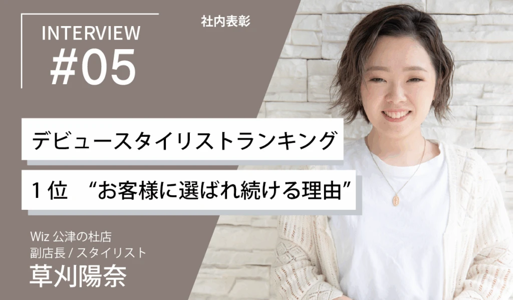 デビューから1年。草刈さんは、Wizの年間の表彰項目である「デビュースタイリストランキング」で1位を獲得しました。