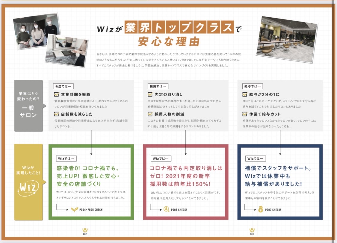 →Wizでは単価の高い新規・フリーのお客様に多数ご来店いただいているため、多くの入客チャンスがあります。また、優秀なスタイリストが多く在籍しておりますので、今までの自分のレベルや弱点を把握することもできます。